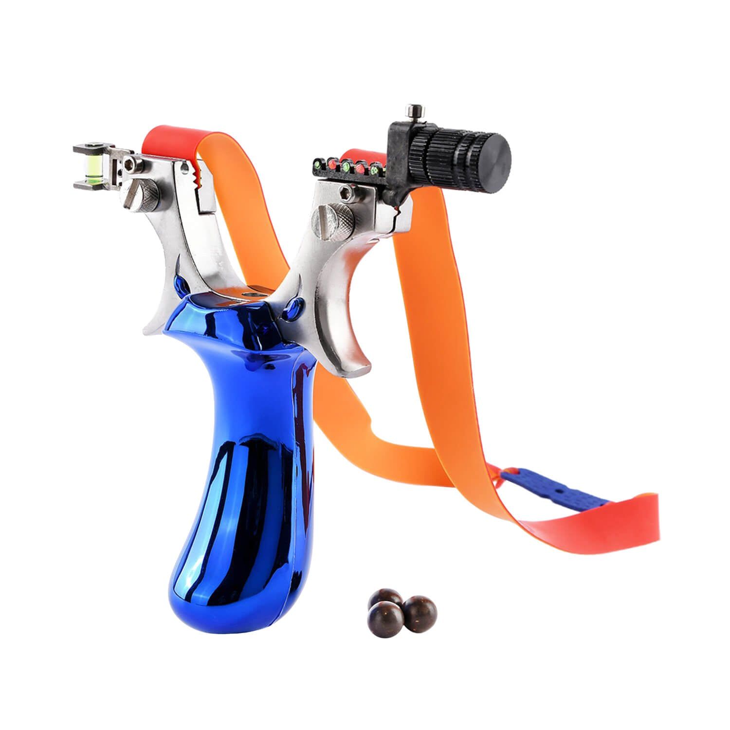 The eye catching Ballista 24 is a blue slingshot featuring a gradienter for better aiming. The slingshot come with two high-tension rubber bands and a sleek grip designed for comfort.