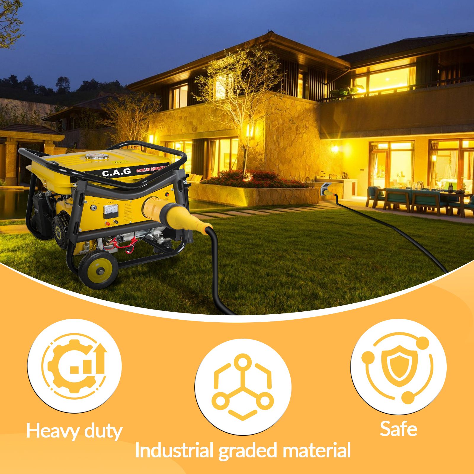 4.Heavy duty and safe . Industrial graded material is used for this yellow generator adapter . With the molded PVC material and copper wiring , ensure it is safe in use and good conductivity .