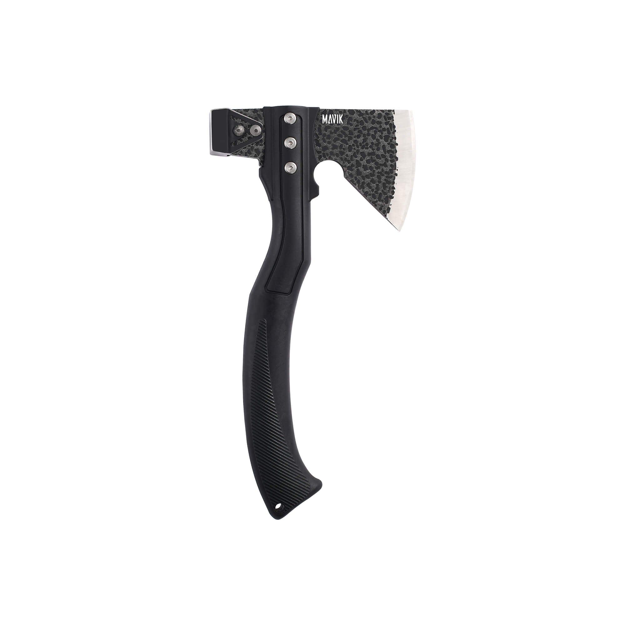 The Hammer AX is a dual-feature camping tool. The blade is sharp and durable, while the hammer head on the back is tough enough to get the job done.