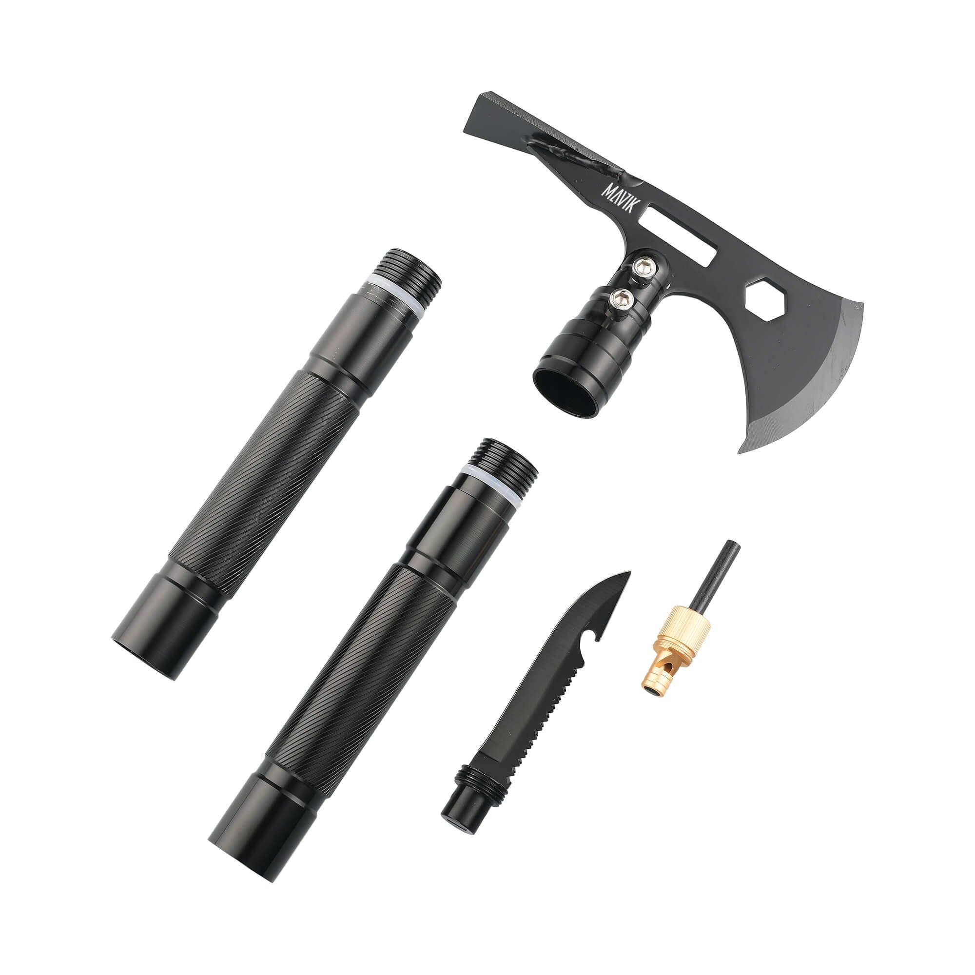 The PIK-AX, a multi-feature, sturdy, camping tool. The anti-slip handle and the strong blade create a perfect balance between power and sustainability.