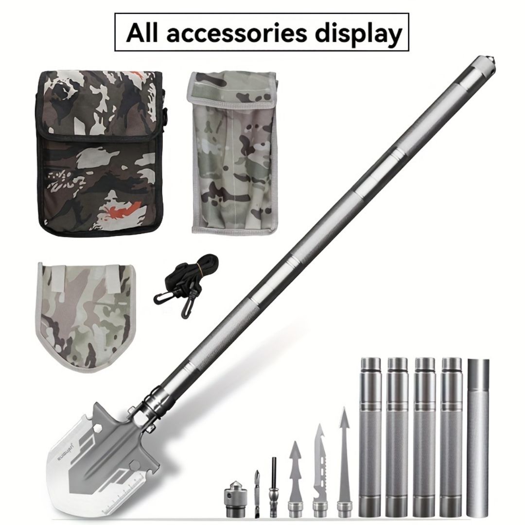 Home > Ultimate Outdoor Multi-Function Tool Shovel: Foldable, Axe, Shovel, Bottle Opener, Saw, Knife, Whistle, Fire Starter, Fish Spear, Window Breaker