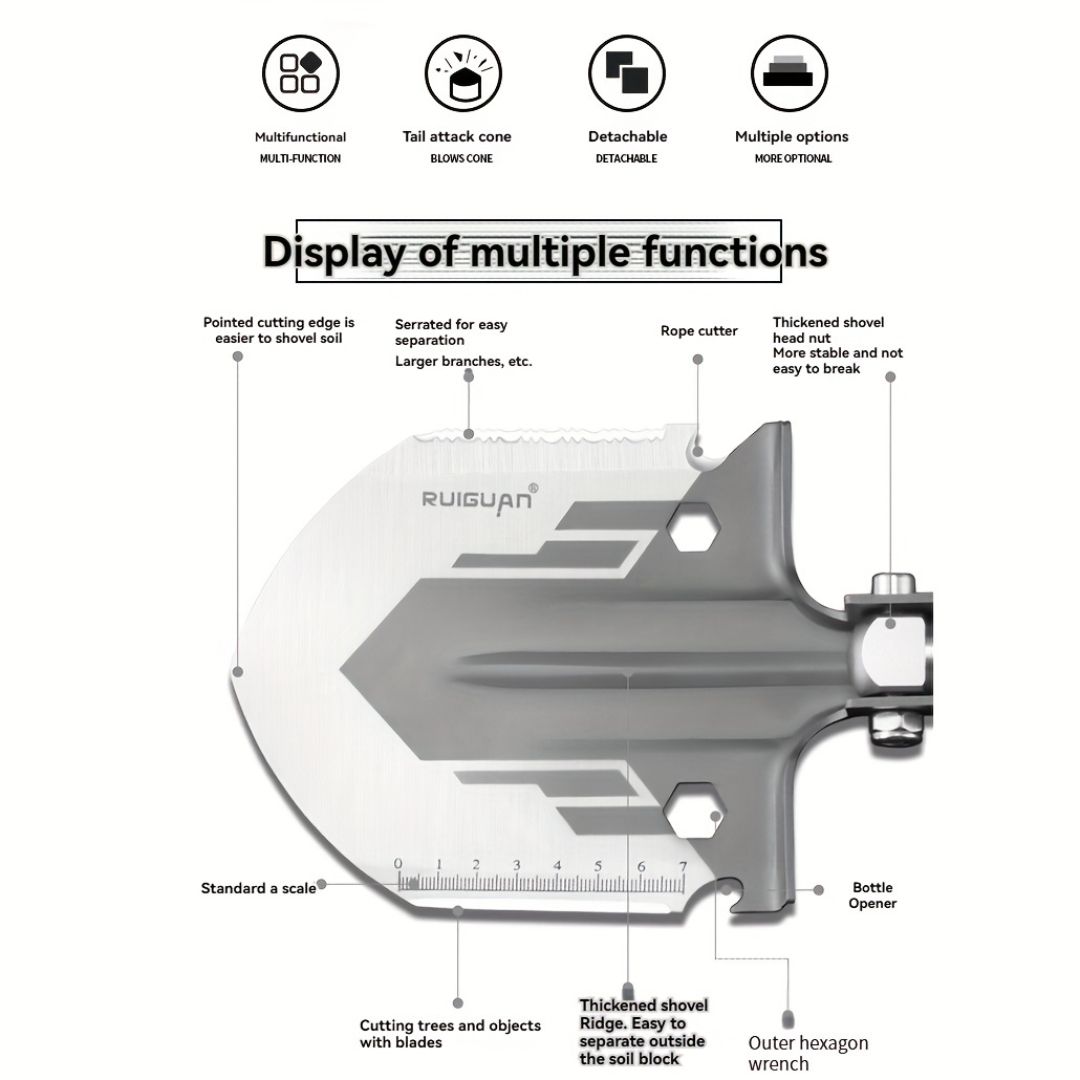 Ultimate Outdoor Multi-Function Tool Shovel: Foldable, Axe, Shovel, Bottle Opener, Saw, Knife, Whistle, Fire Starter, Fish Spear, Window Breaker Ultimate Outdoor Multi-Function Tool Shovel: Foldable, Axe, Shovel, Bottle Opener, Saw, Knife, Whistle, Fire Starter, Fish Spear, Window Breaker Ultimate Outdoor Multi-Function Tool Shovel: Foldable, Axe, Shovel, Bottle Opener, Saw, Knife, Whistle, Fire Starter, Fish Spear, Window Breaker
